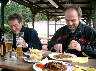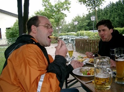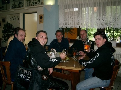 ...klitsch-nass haben wir uns in ein Sportlerheim in Heiligenstein gerettet und erstemal 2-3 Bierchen getrunken (schon wieder *g*)...danach gings weiter zum MC LINGENFELD ...dort haben wir erstmal 2-3 Bierchen... ;-)