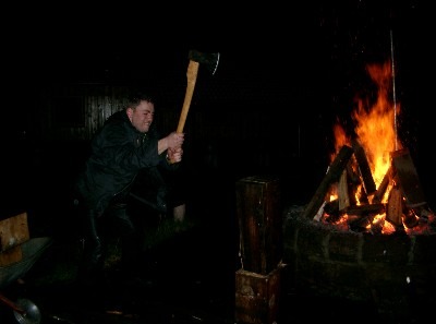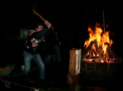 der Holzspaltwettbewerb wurde unter unseren Gästen Bigwoop und Ritch (hier links) ausgetragen....habt da gut gemacht